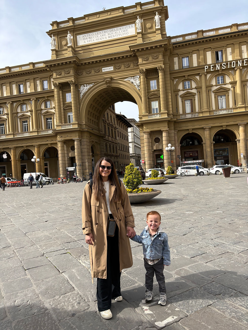 We kept walking toward a park with a playground, but it ended up being quite a long walk! Once we finally arrived, Silas had fun chasing pigeons and playing on the equipment, while Clementine and I just enjoyed the beautiful weather. When we asked Silas what he thought about Florence so far, he noted there are “lots of pigeons and lots of ambulances” 😂 welcome to the city, bud.