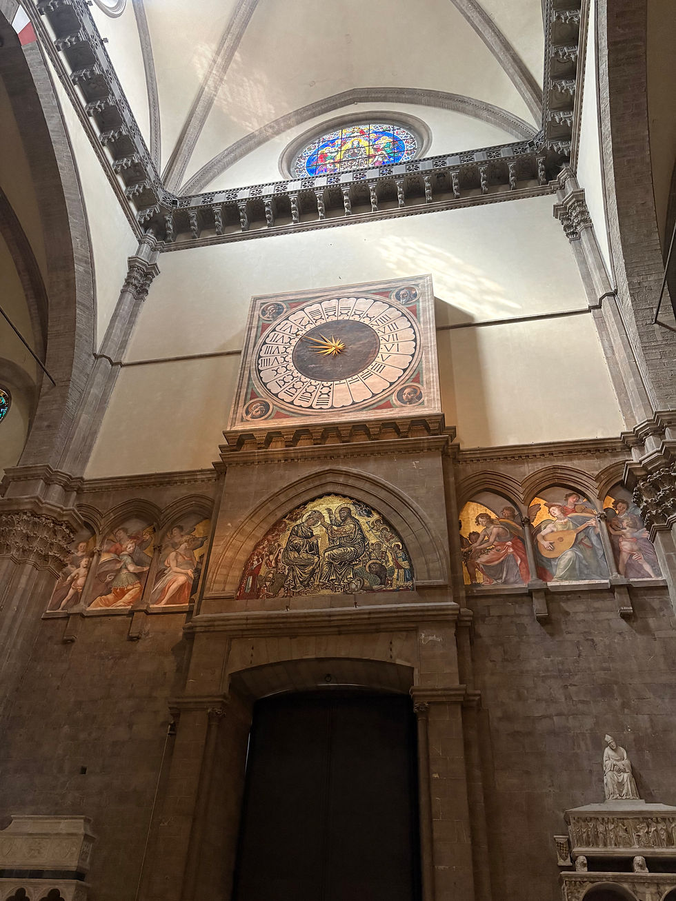 This clock was pretty fascinating. It runs on “Italian time”, with 24 hours on the clock, running counterclockwise with 1 being 1 hour after sunset. Makes sense to me!